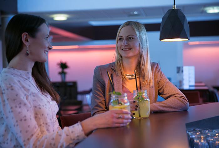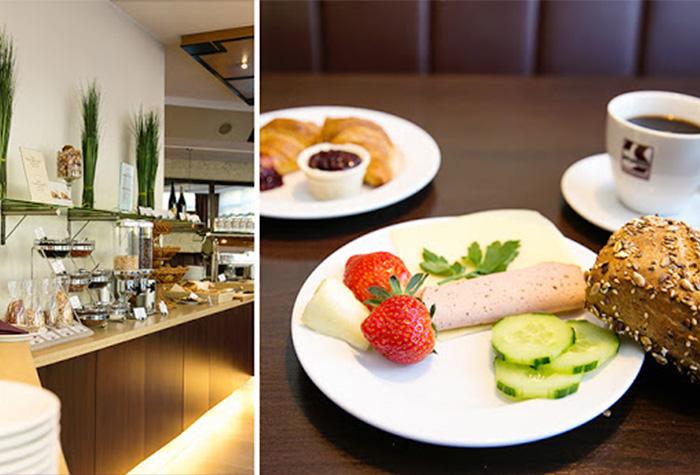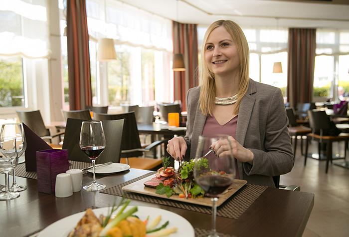 Morgens erwartet Sie im Hotel ein reichhaltiges Frühstücksbuffet. Freuen Sie sich mittags und abends auf internationale Gerichte und erlesene Weine im hauseigenen Junkers Restaurant. Genießen Sie diese im Sommer auch auf der Terrasse mit Grillbereich. Sie haben Zugang zur 24-h geöffneten Bar oder entspannen in der Bibliothek mit Kamin.